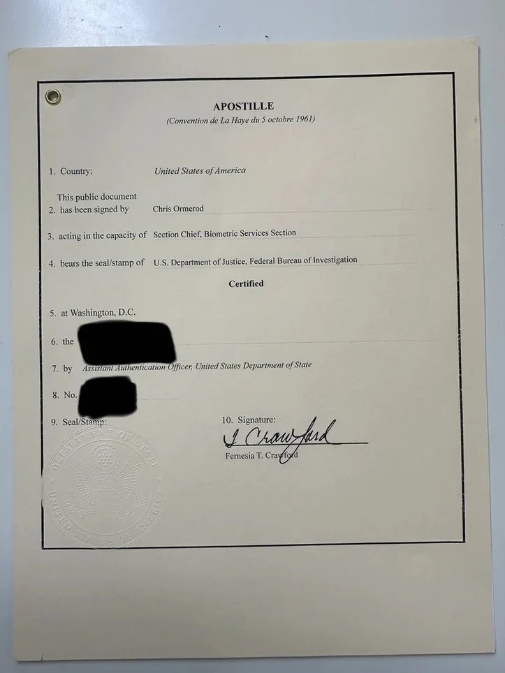 FBI Apostille is a form of authentication issued by the U.S. Department of State, certifying the authenticity of an FBI background check for use in countries that are part of the Hague Apostille Convention. This document is essential for many purposes such as work visas, immigration, and international legal proceedings. Without an apostille, your FBI background check will rarely be accepted abroad.